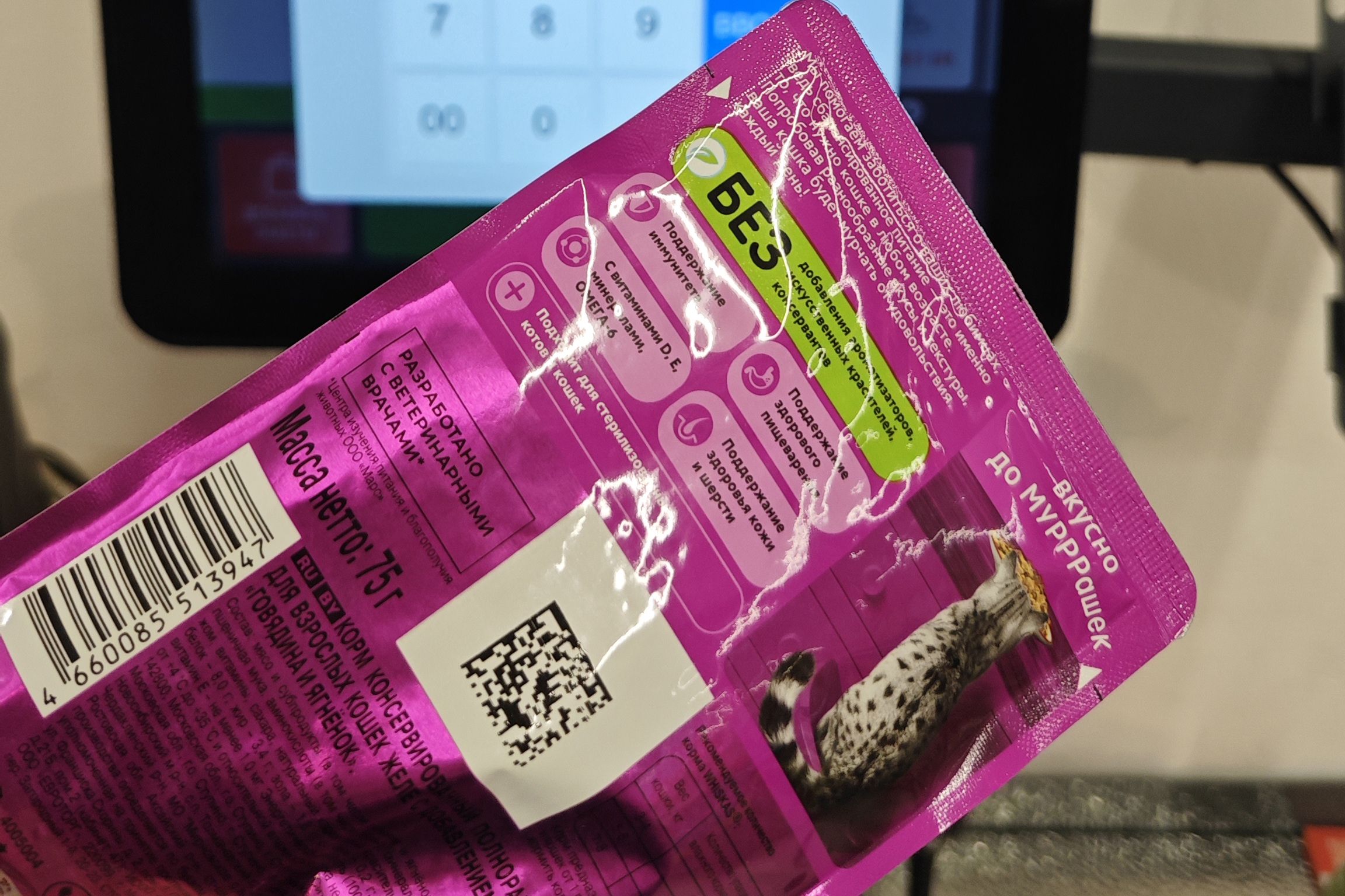 Как быть с безальтернативным выбором «этикетирования» в полуфабрикатах куриной группы / колбасах? Вся проблема в том, что куриные грудки оборачиваются в пленку, а колбаса набивается в оболочку, при этом полностью исключается вариация типографского нанесения штрих-кода на оболочку или пленку. Пленка на куриной грудке растягивается в момент упаковки. Колбасная оболочка также тянется, и ты обязан выйти на набивочный диаметр, а он по ряду причин вечно разный. Поэтому у штрих-код расползается и теряет качество считывания, и дальше его просто нельзя использовать.