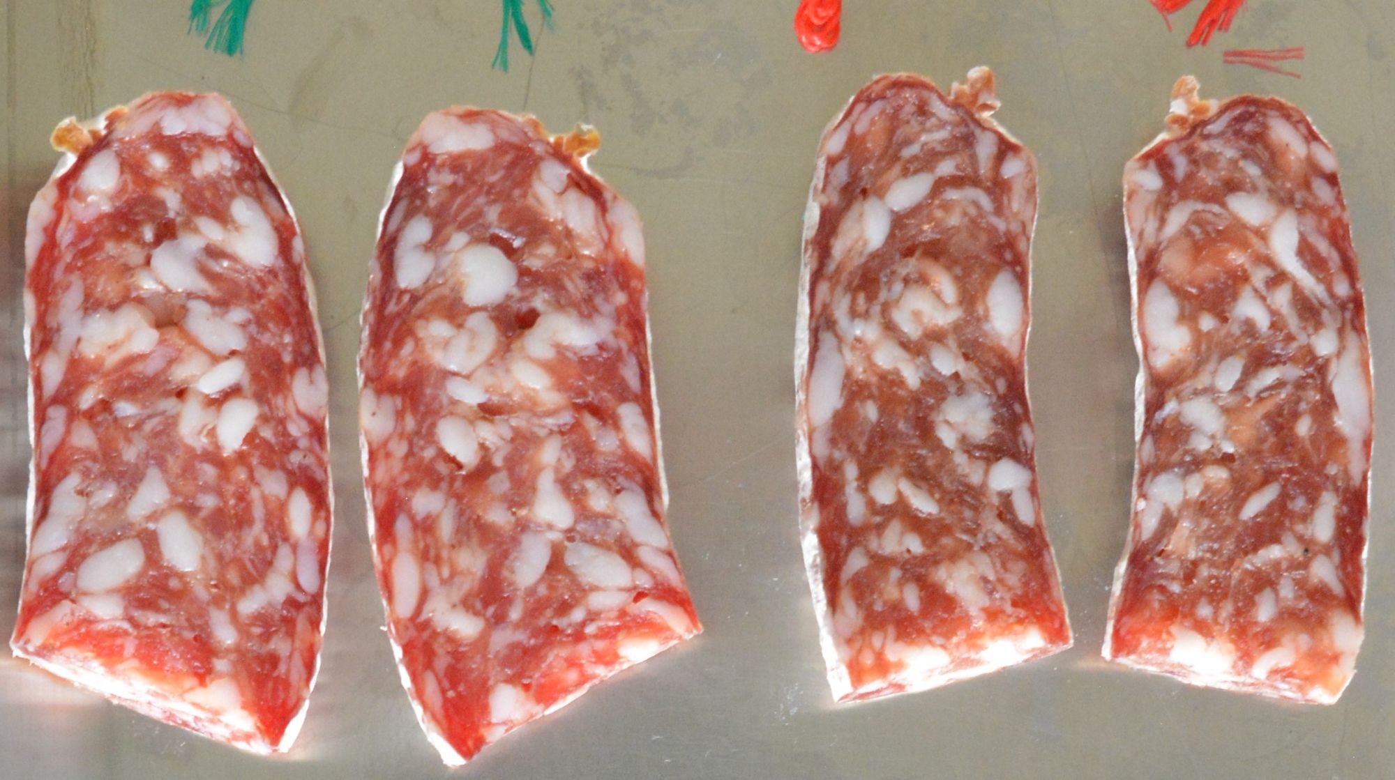 Фуэт после 6 дней созревания. Верхняя колбаса с SafePro® EasyCure LC, ниже – контрольный образец.