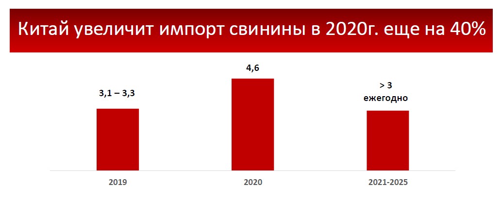 Он также подчеркнул, что панируемое широкое открытие внешних рынков для отечественных отраслевых игроков означает наступление нового периода прямой жесткой конкуренции с мировыми грандами в экспорте свинины не только на защищенном внутреннем рынке России (пошлина 25%), но, прежде всего, на рынках Юго-Восточной Азии.