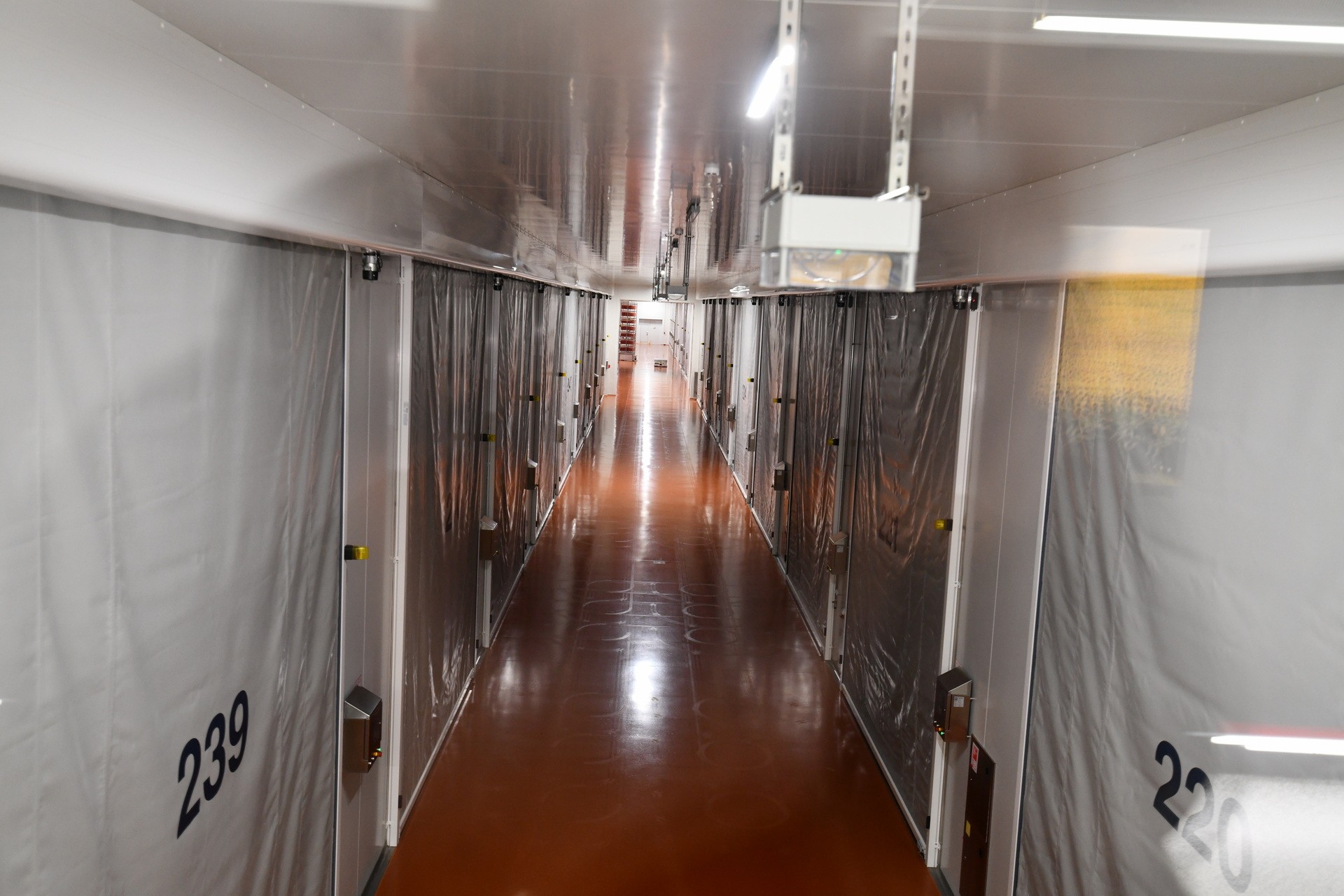 Когда робот подъезжает к камере, двери автоматически открываются, впуская его внутрь.