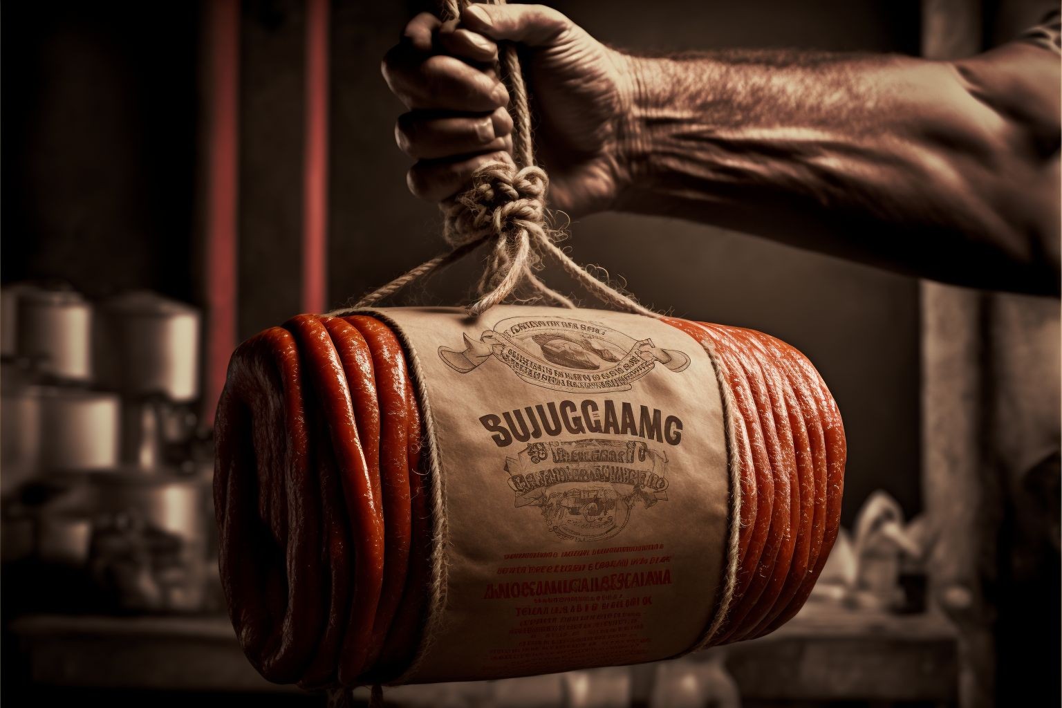 Вопрос о создании этикеток изделий из мяса актуален, но полная автоматизация этой задачи пока невозможна из-за сложностей с генерацией текста на изображениях и проработки деталей. Тем не менее, референс этикетки нейросеть может формировать, как показано на фото.