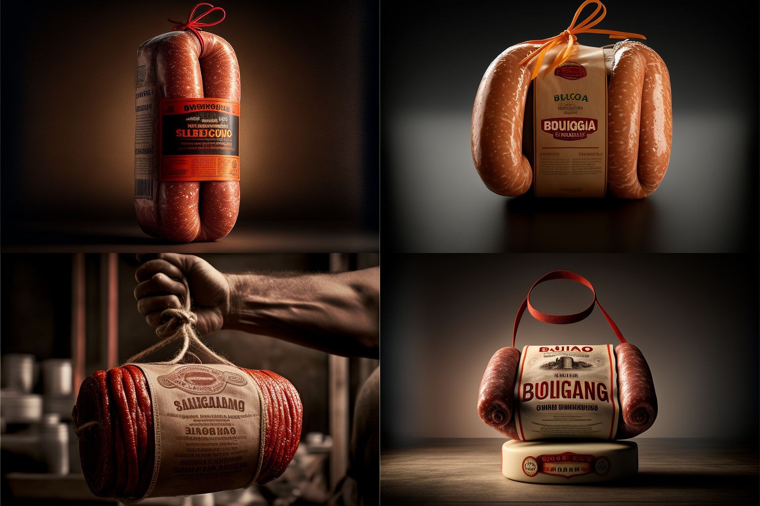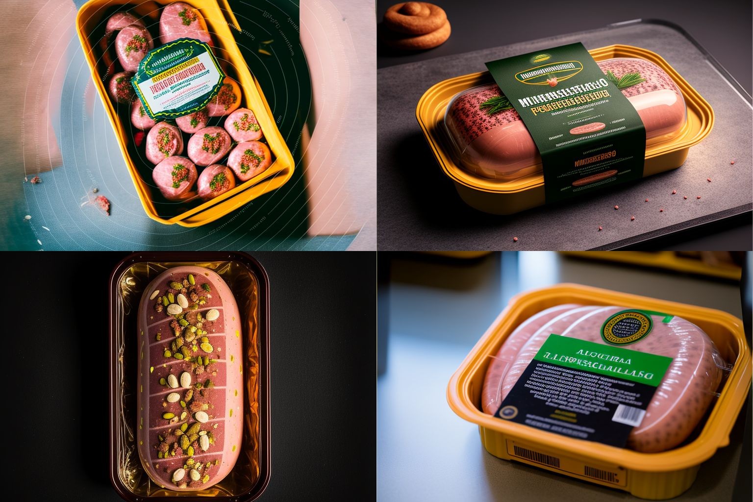 Референсы упаковки изделий из мяса, сгенерированные нейросетью Midjourney