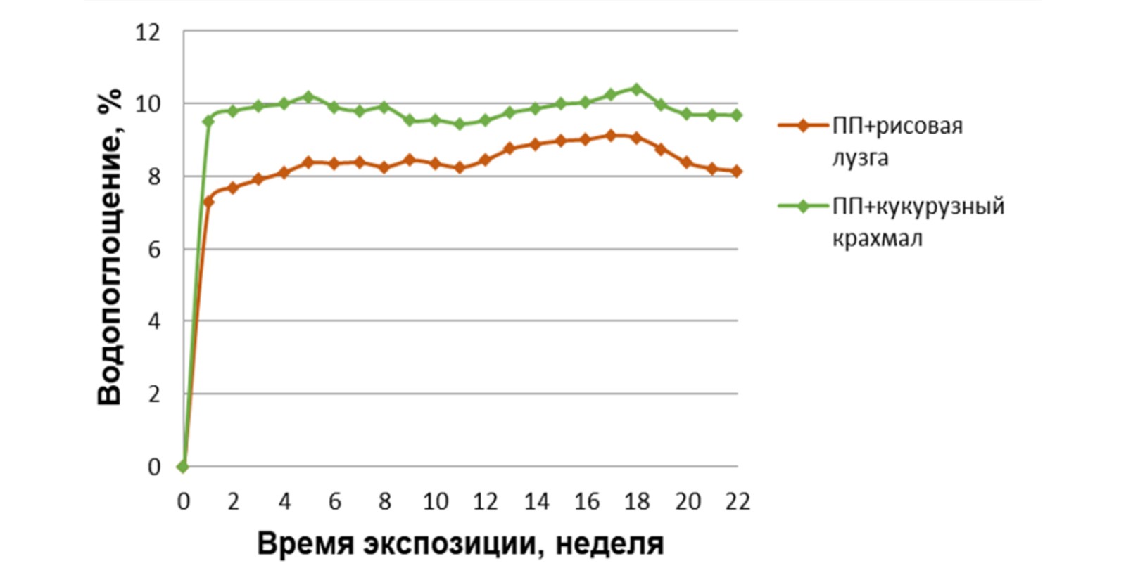 В настоящее время активно развивается направление по разработке синтетических полимерных композиций с добавлением в них отходов АПК для создания новых материалов, способных к биоразложению. Примером такого материала может служить ПМ на основе полипропилена, рисовой лузги и/или кукурузного крахмала.