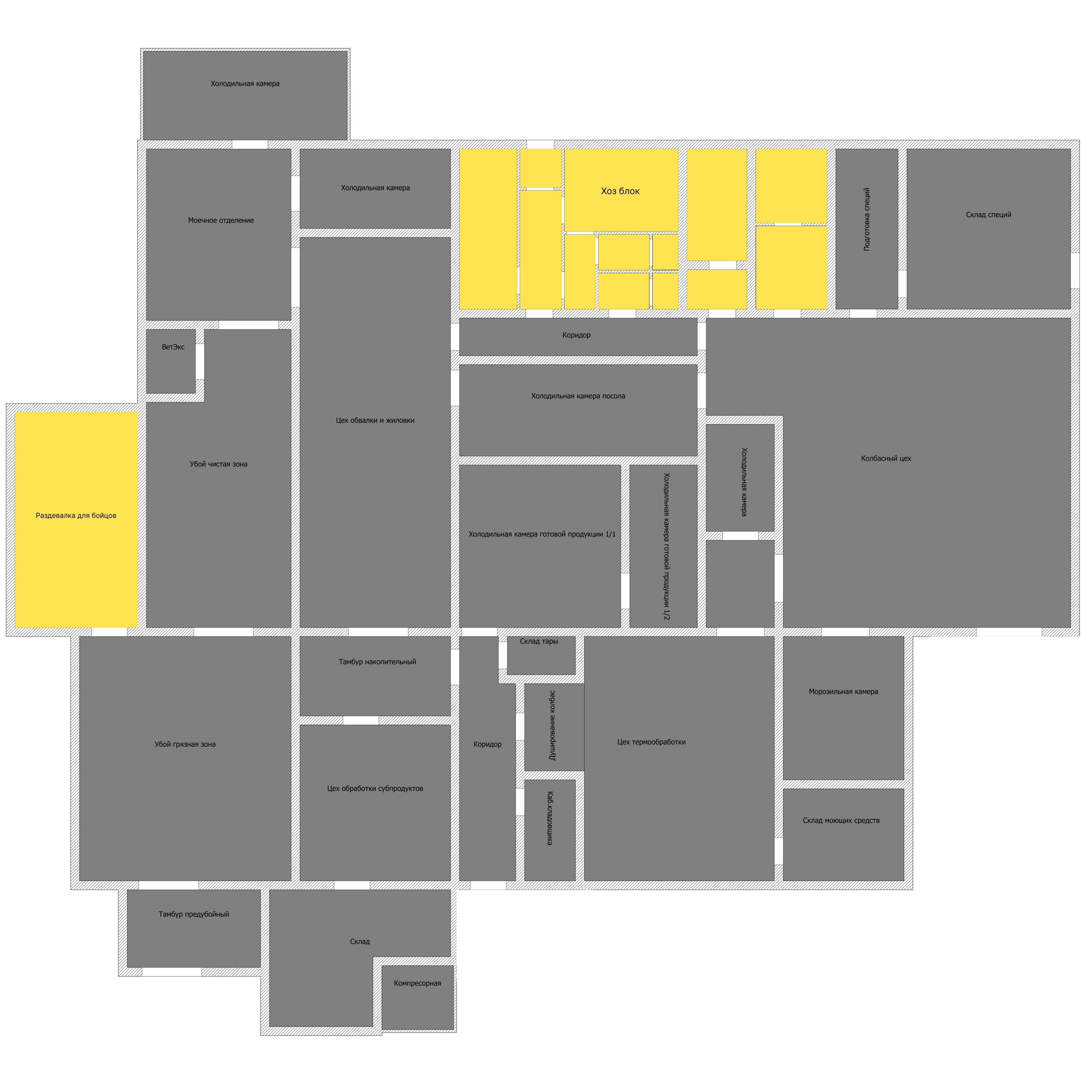 А да..единый проходной коридор от грязной зоны убоя до склада и один санпропускник общий на входе.