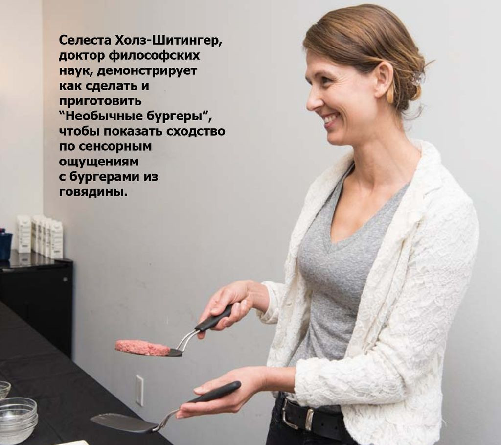 Научная цель состояла в том, чтобы создать пищу, подобную мясной, устранив неэффективную часть процесса, и получая продукты на основе растений. «Наш первый продукт – «Невероятный бургер» – лишь один из многих, которые вскоре появятся на рынке. Мы действительно хотим заменить все продукты животного происхождения на вкусную и питательную растительную пищу», – признает Хольц-Шитингер.