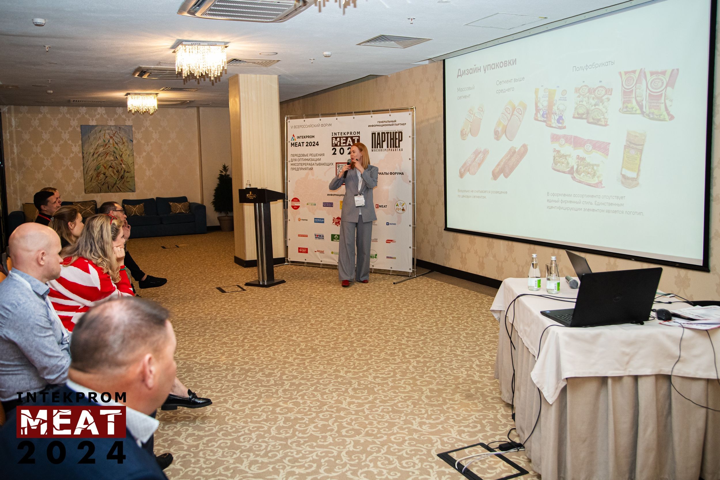 Тем временем в другом зале проходила секция 4.2, посвященная эффективным маркетинговым инструментам. Ее открыл Владимир Романов, основатель независимого портала для специалистов отрасли «Мясной Эксперт». Он объяснил, как создать продукт, который понравится всем, и поделился идеями новинок, которые наверняка будут продаваться в 2025 году.