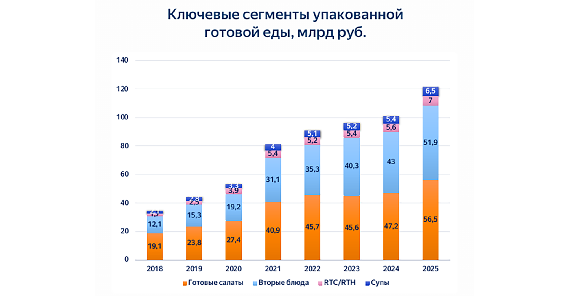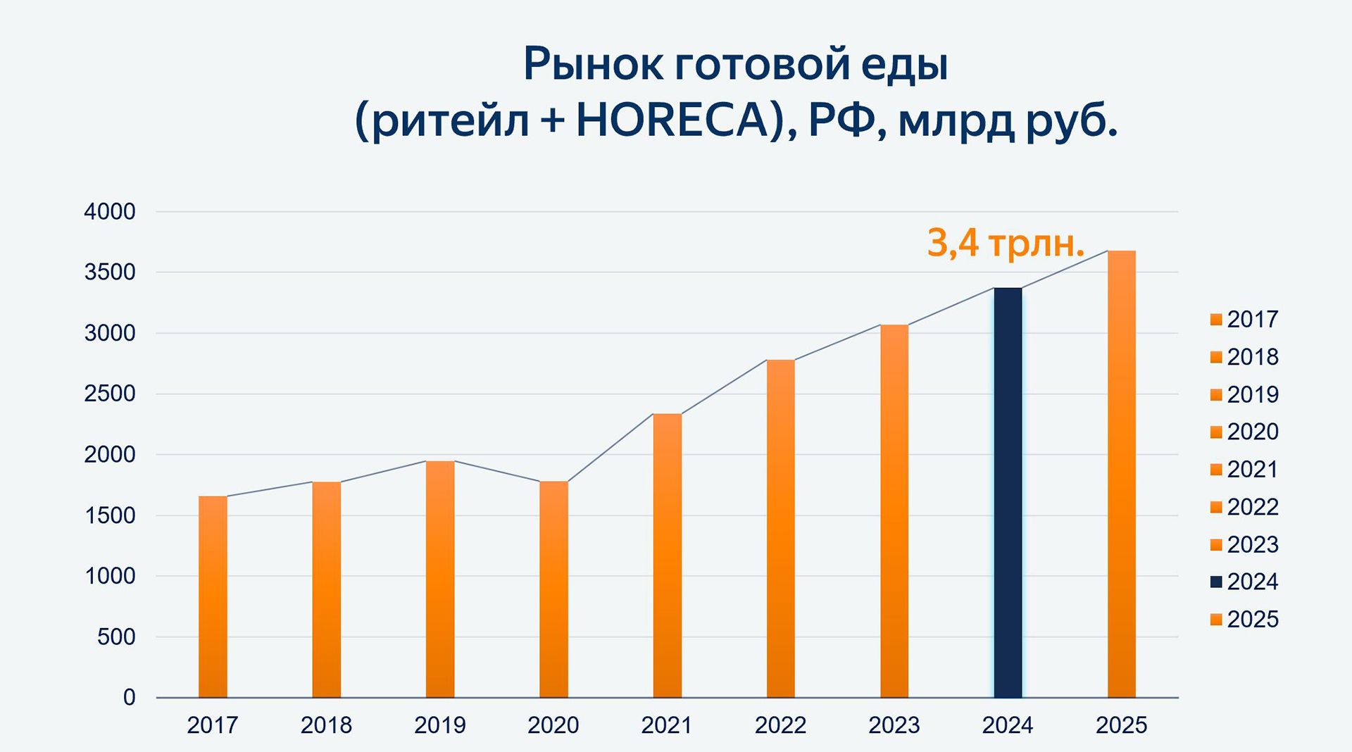 Рынок готовой еды демонстрирует значительный рост и изменения, обусловленные изменением потребительских предпочтений, ростом стоимости времени в жизни современного человека и технологическими инновациями в области производства, хранения и каналах продаж готовой еды.