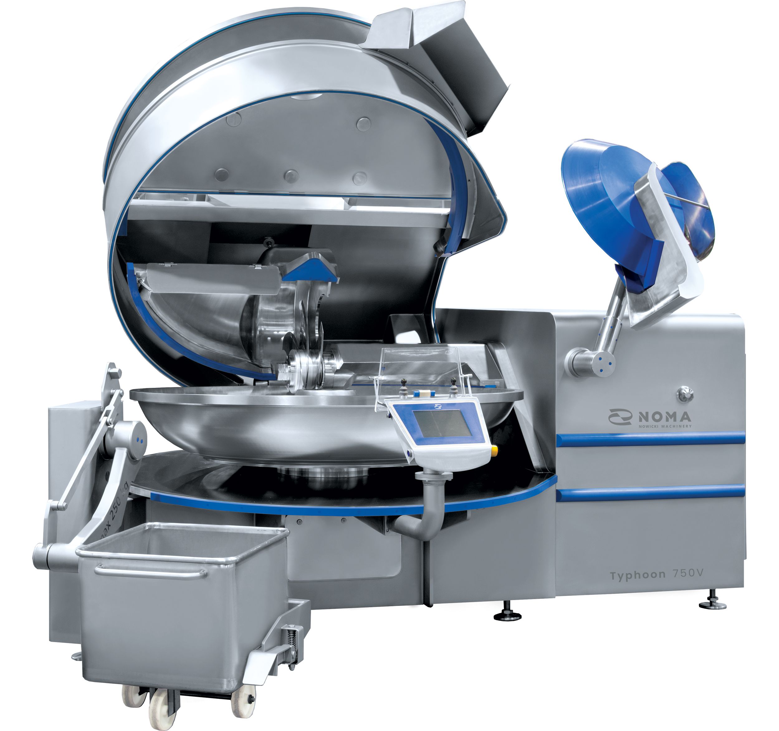 В линейке куттеров пополнение – новая модель куттера емкостью 750 литров KN-750 HL. Модель KN-750 HL была разработана на основе многолетнего опыта в адаптации куттеров к конкретным требованиям перерабатывающих предприятий. Его прочная и безотказная конструкция, высокая производительность и универсальность в эксплуатации делают его идеальным решением для измельчения, эмульгирования и смешивания сырья в промышленных масштабах. Чаша куттера была специально разработана для поддержания оптимального расстояния (зазора) между ножами и поверхностью чаши на протяжении всей ее траектории. Частота вращения, обеспечивающая линейную скорость ножа до 168 м/с, позволяет регулировать параметры измельчения в соответствии с конкретными требованиями технологического процесса. KN-750 HL отлично справляется как со свежим, так и с замороженным мясом, благодаря специально подобранным наборам ножей. Высокая производительность KN-750 позволяет достигнуть значительной эффективности его работы. При уровне заполнения чаши на 80-90% и времени обработки примерно 12 минут для эмульгированных продуктов и 4-5 минут для продуктов типа салями производительность системы составляет 3-4 тонны в час.