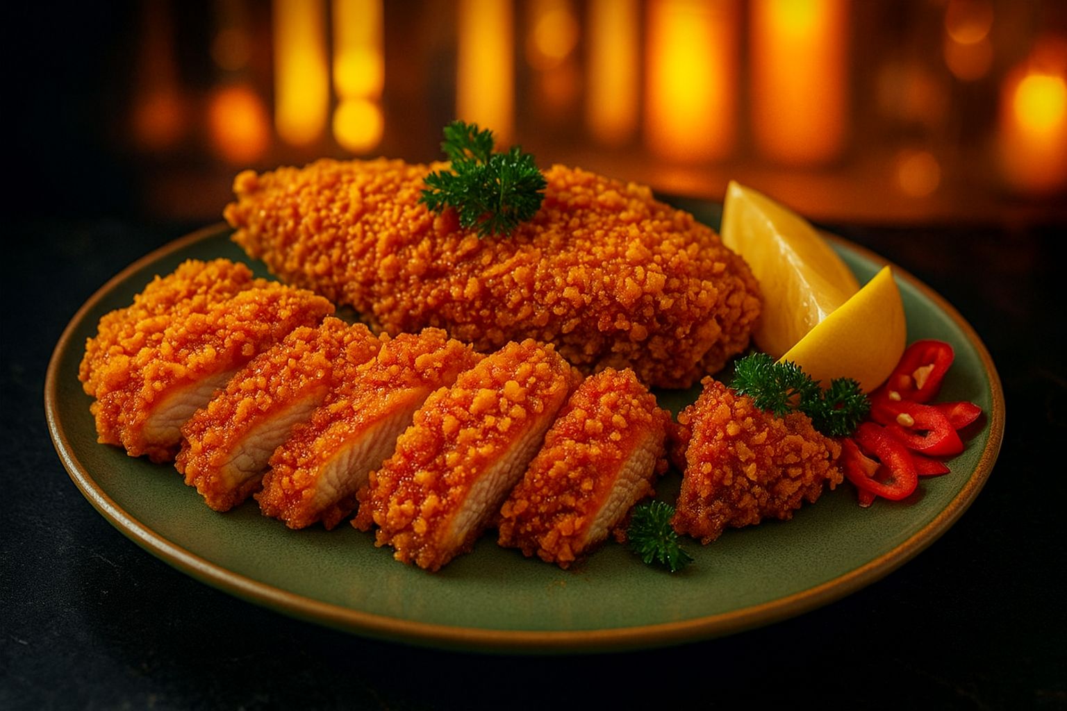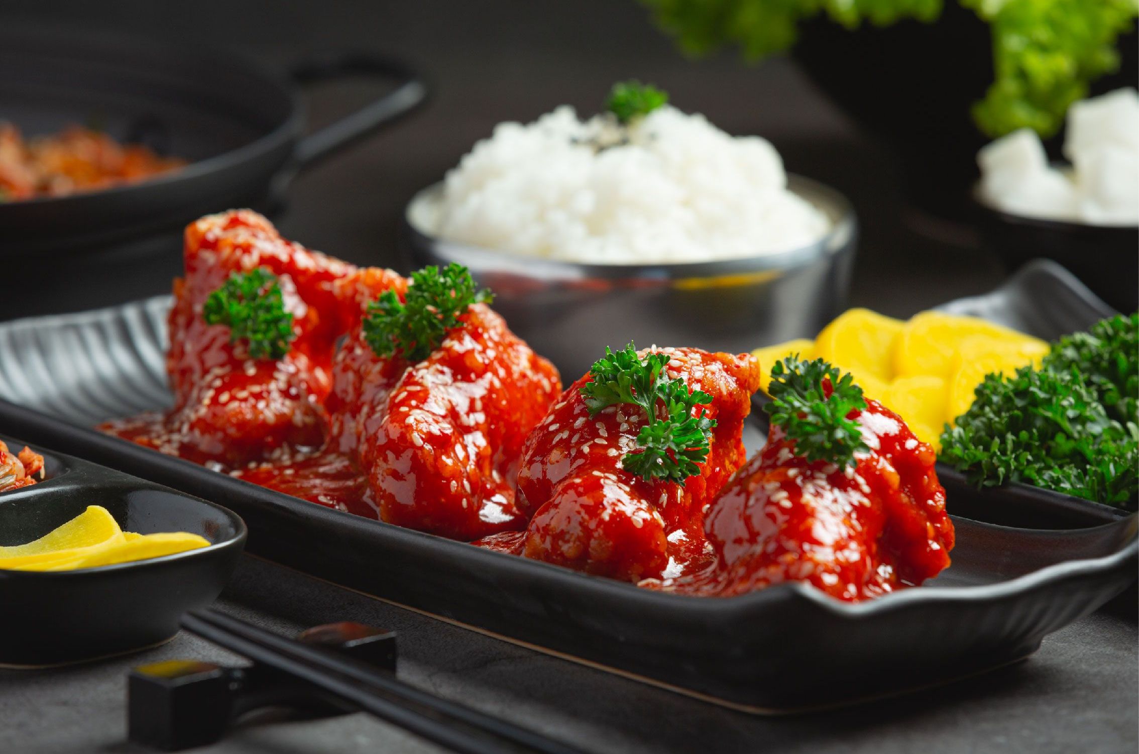 Интересное решение – курица в панировке по-корейски. Это панировочная система со вкусом кочучжана и корейского перца чили (кочучжан – популярная паста в корейской кухне с глубоким, многослойным и сбалансированным миксом остроты, сладко-соленых нот, кислинки и дыма) – для трендовых новинок в фудсервис и сегменте готовой еды.