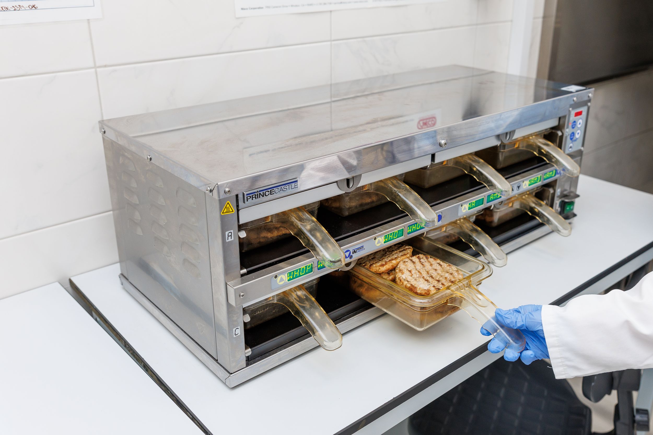 Лаборатория оснащена тем же оборудованием для жарки на гриле, что установлено в ресторанах «Бургер Кинг». Для каждого продукта устанавливается своя программа и время жарки. После жарки котлеты укладываются в шкаф хранения с верхним и нижним подогревом (идентичный тому, что использует «Бургер Кинг»), где они выдерживаются в течение определенного времени, оставаясь сочными и горячими.