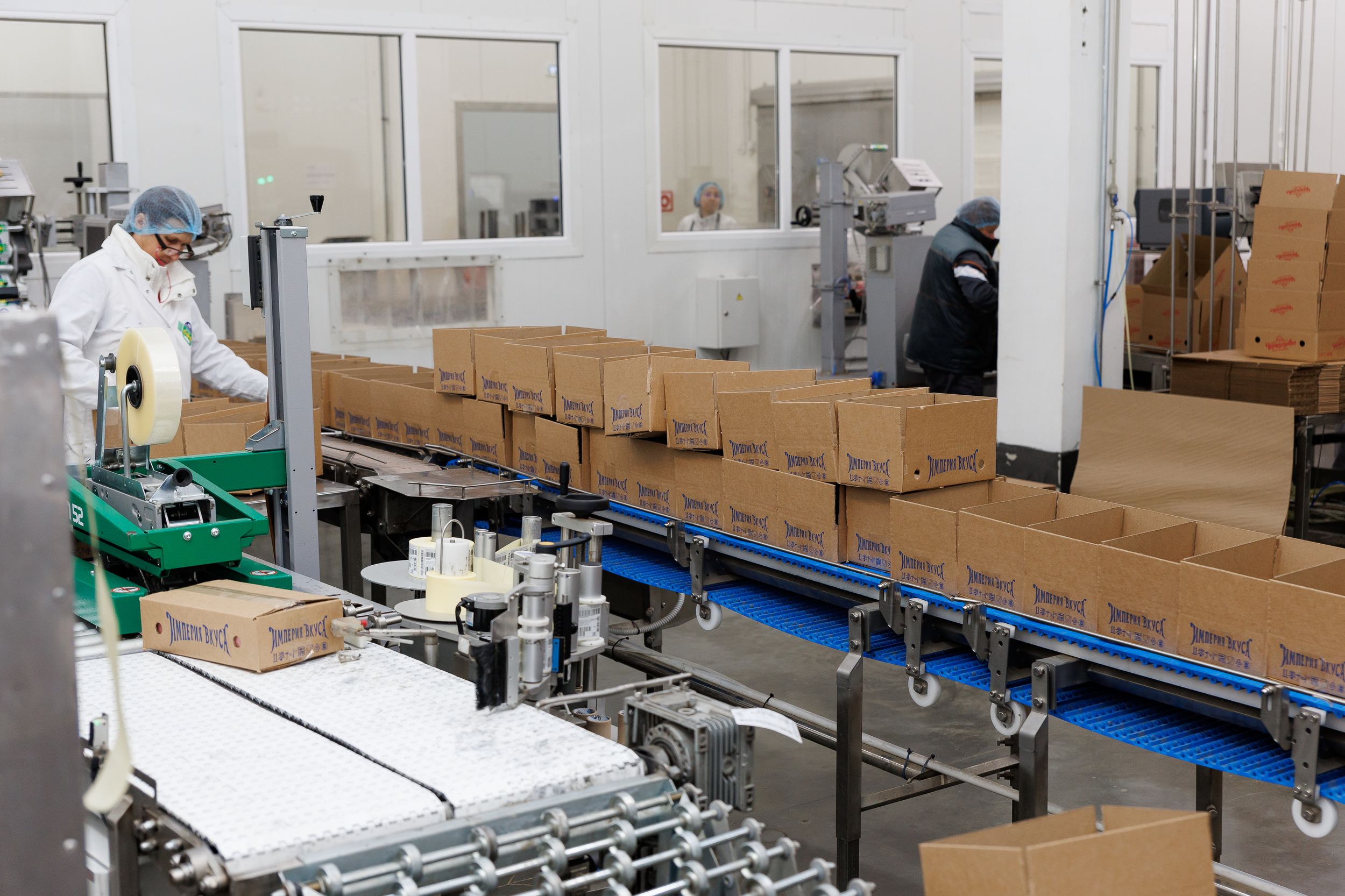 Нам объяснили, как происходит процесс охлаждения в пресс-рамах, а затем распаковка и маркировка продукции, показали, как работает коробоформирующая машина и товар готовится к отгрузке.