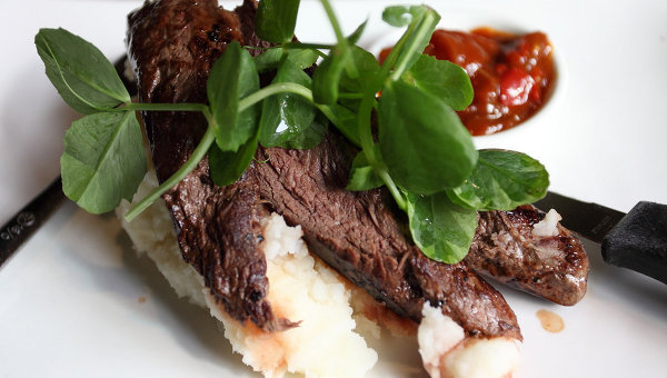 Кролики, как известно старшему поколению россиян, это не только ценный мех, но и 3-4 килограмма… Аналогичным образом ситуация обстоит и с кенгуру, которые не только символ Австралии. Эти уникальные сумчатые не просто радуют туристов со всего мира, но и создают множество проблем австралийским властям в связи со своей стремительно растущей популяцией. Так что на Зеленом континенте официально разрешена охота на кенгуру, если, конечно же, у вас есть соответствующая лицензия. Кенгуру употре(ой!)лись в пищу аборигенами многие века, но официальное одобрение на использование их мяса на кухнях Австралии было получено только в 1993 году. Да и сейчас количество австралийцев, более или менее регулярно вкушающих кенгурятину, варьируется в пределах 5-10% от всего населения этой страны. При этом стоит отметить, что экспортировать мясо кенгуру австралийцы начали задолго до 1993 года, в том числе в Россию, которая являлась одним из крупных покупателей вплоть до 2009 года. Как можно догадаться, это мясо примешивали нам в колбасы, сосиски, сардельки и прочие ветчины. Скажем спасибо нашим мясоперерабатывающим заводам за введение в наш рацион мяса кенгуру (хоть и без нашего ведома), ведь оно чрезвычайно полезно, поскольку содержит железо и линолевую кислоту, богато протеином и характеризуется очень низкой жирностью (менее 2%). Считается, что линолевая кислота обладает антидиабетическими и антиканцерогенными свойствами. Достоверно известно, что нежирное мясо очень легко превратить в резиновую подошву, так что если в наши планы не входит обедать калошами, читаем дальше. Лучшим вкусом, по общему мнению, обладают красные кенгуру, которые обитают в основном в Западной Австралии, а также относительно недавно появившиеся на рынке тасманийские валлаби. Лучше покупать замороженное мясо, в котором останавливаются процессы старения, но если вы хотите почувствовать особый привкус австралийской дичи, дайте мясу состариться в масле месяц-другой. Многие шеф-повара Австралии предварительно маринуют мясо кенгуру. Маринадом может служить красное вино, масло макадамии или фруктовые смеси с добавлением местных специй. После того как мясо достаточно промариновалось, разогревают барбекю или сковороду до температуры около 200 градусов и выкладывают мясо. Чтобы стейк сохранил свою сочность и нежность, жарят это мясо всего 3-5 минут с каждой стороны, снимают с огня и оставляют "доходить" под фольгой. Разрезать мясо лучше поперек волокна. Дальше все ограничивается вашей фантазией: теплые салаты, горячее с любым гарниром, карри, карпаччо, жаркое, сэндвичи, котлетки и многое другое. Вот один из простейших рецептов австралийской кухни - кенгуру с пюре из сладкого картофеля с подливкой. Нам потребуется: четыре филе кенгуру (180-200 грамм каждое), 750 грамм сладкого картофеля, три столовые ложки сливочного масла, столовая ложка розмарина (мелко нарезанного), два зубчика чеснока (раздавленные), две столовые ложки молотого черного перца, две столовые ложки оливкового масла, две столовые ложки муки, две чашки молока, соль по вкусу. Смешайте оливковое масло, розмарин, чеснок и черный молотый перец и замаринуйте филе кенгуру (держать не менее часа). Почистите и порежьте на куски сладкий картофель, положите в слегка подсоленную кипящую воду, варите до готовности (10-15 минут). Слейте и сделайте пю