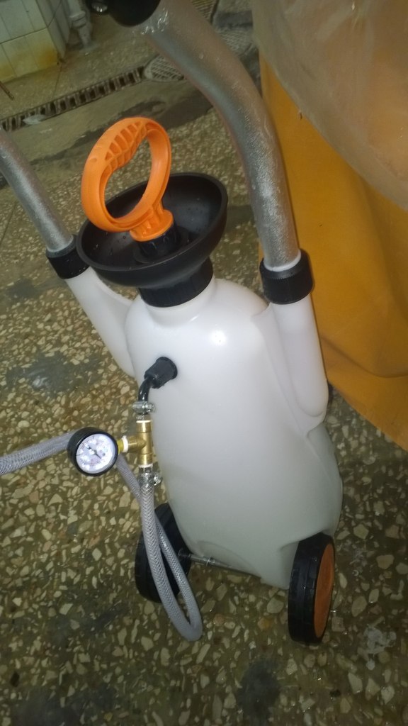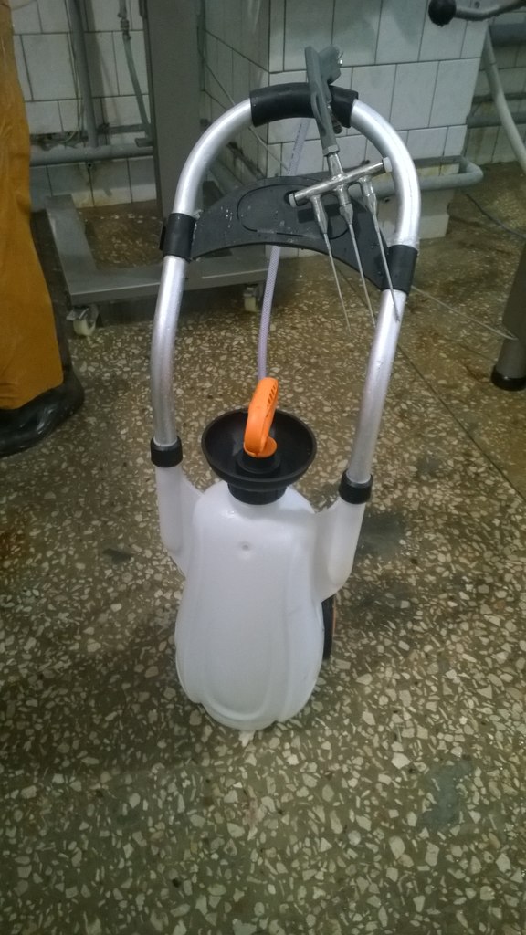 Ну это обычный пульверизатор для огорода, только насадку с иглами и манометр прикрутили. А насчет пластика не знаю. На это чудо даже патент есть и стоит оно 5000 рублей.