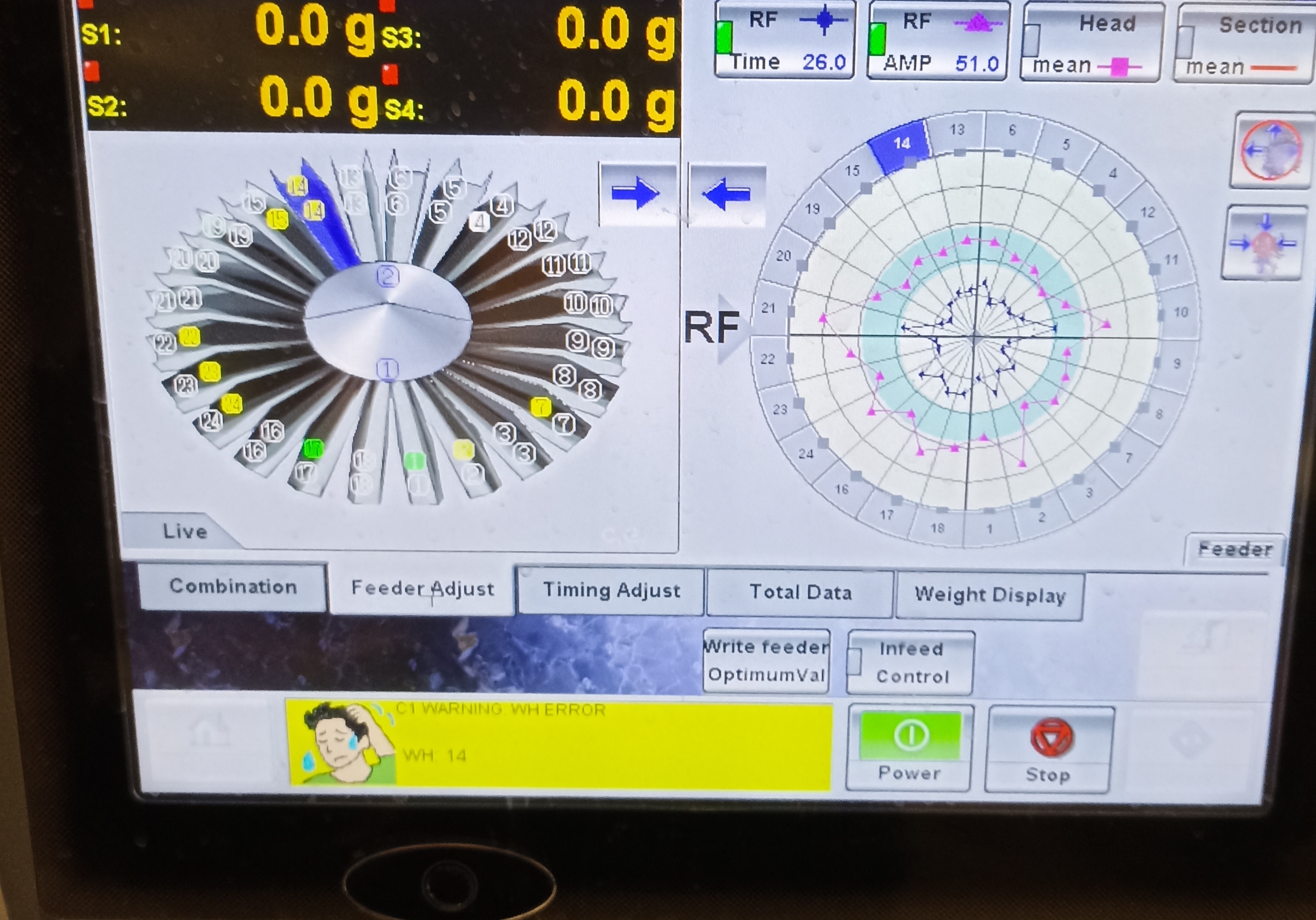 Используем мультиголова ishida, в процессе работы один из взвешивающих бункеров выдает ошибку (фото ошибки приложил). Попробовал заменить на новую, проблема не ушла. Этот взвешивающий бункер выдает не постоянную ошибку,а переодическую, т.е. к примеру сделал 50 взвешиваний,ошибка. Ресет,сделал 20 взвешиваний,ошибка. Вес при этом не прыгает,и при установке нуля стоит 0.00