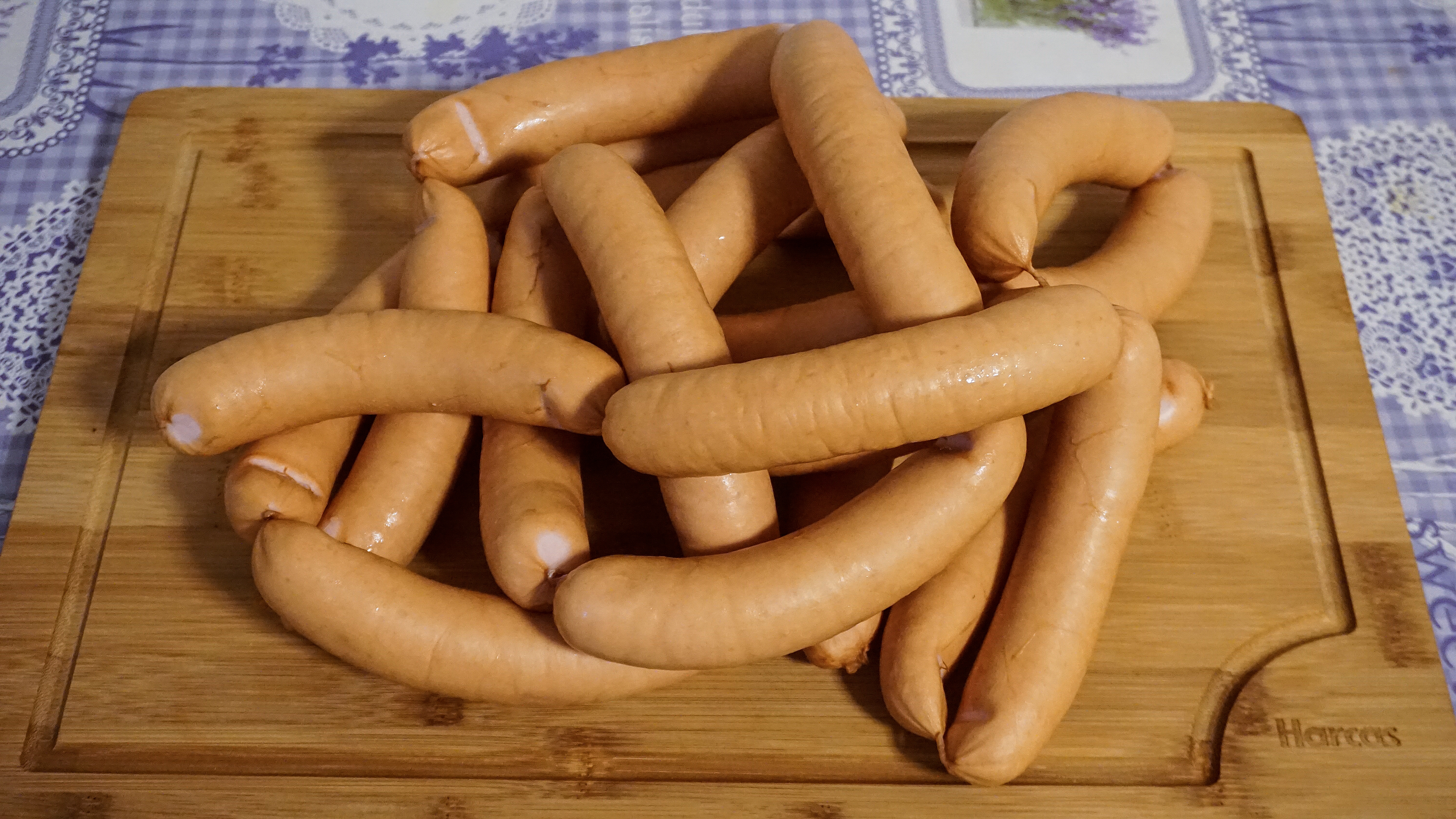 Зевс Опубликовано Вторник в 12:50 Опубликовано Вторник в 12:50 Здравствуйте, раньше у меня был куттер на 11 литров, потом я его продал. Остался маленький на 3,5 литра.Но сосики немного можно сделать. У нас венские сосиски все очень любят, просто отваренные сосиски с горчицей и бретцелем. К стати сосики не варят, довести дуду до кипения забросить сосиски в кастрюлю и кастрюлю отставить в сторону, через 5 минут сосиски готовы. Сосиски в тесте, я делаю в слоёном тесте. Сосиски отвареные с картофельным пюре и соусом, тоже очень вкусно. В венские сосиски обязательно добавляют говялину, франкфуртерские сосиски делают только из свинины. Короче рецепт: 400 г свиной грудинки без шкурки (с хорошей мраморностью) 300 г свиной шеи/лопатки 200 г говядины (постной, без сухожилий) 200 г дробленого льда (снега) Специи в граммах на килонрамм мяса 18 г нитритной соли (содержание нитритов 0,4%-0,5%) 3 г молотого белого перца 1 г сладкой паприки 1 г мускатного ореха 1 г молотого кориандра 3 г гранулированного лука 2 г декстрозы/глюкозы 0,5 г аскорбиновой кислоты (витамин С) Фосфат 4 -5г В этот раз фотографий не много