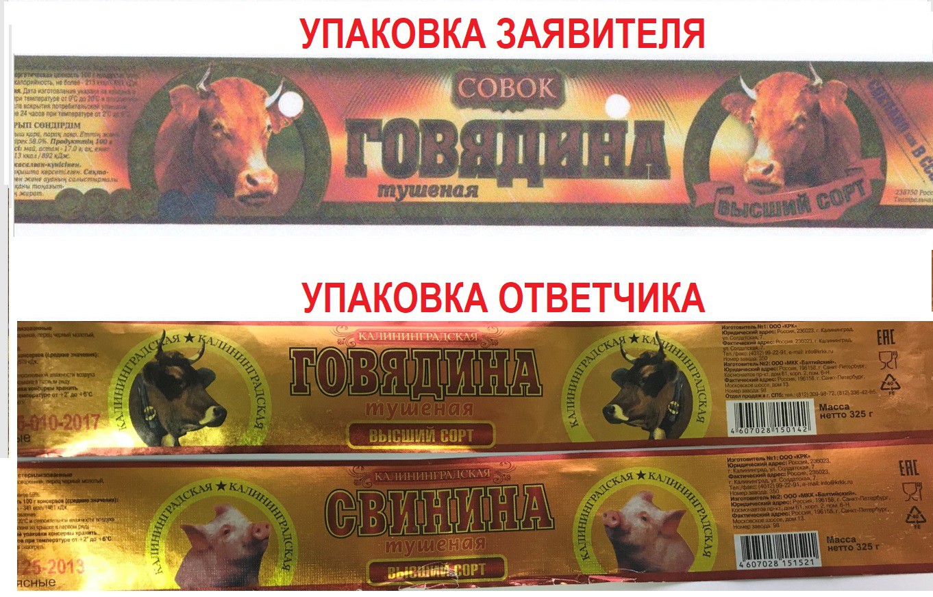 Как отмечают в управлении ФАС по Санкт-Петербургу, упаковки заявителя и ответчика являются схожими до степени смешения. «Глобус» является правообладателем товарных знаков, включающих в себя изобразительные и словесные элементы «Совок», «Свинина» и «Говядина».