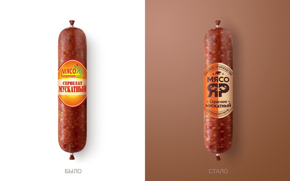 Брендинговое агентство предложило построить дизайн упаковки на контрасте светлого и темного тонов. Для основной изготовленной по ГОСТ линейки — красного и беж. Логотип стал более компактным, но в то же время более заметным. За счет двухуровневого написания названия «МясоЯр», дизайнеры сфокусировали внимание потребителя на слоге «Яр», то есть на местном, ярославском, происхождении продукта.