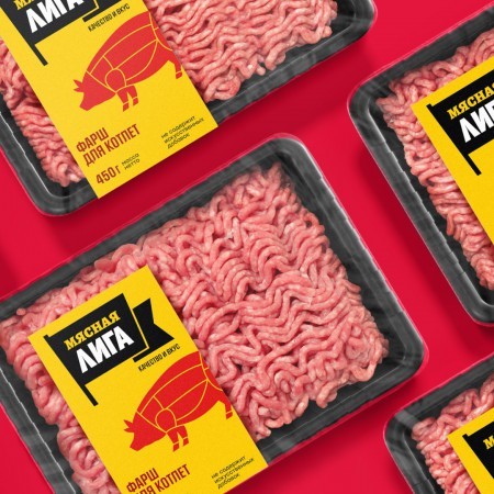 «Мясная лига» — честный и прямолинейный бренд мясной продукции, поставщик которой сочетает разумную цену и достойное качество. Об этом свидетельствуют концепция бренда, название и минималистичный дизайн этикетки.