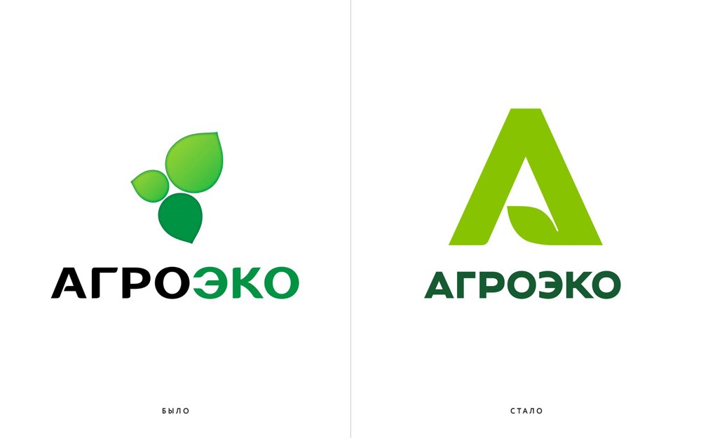 Прежний логотип «Агроэко» представлял собой изображение трилистника. С точки зрения Getbrand, такое решение не вполне подходило для упаковки мясных изделий. Взамен они предложили логотип в виде заглавной зеленой буквы «А» с листком в основании, символизирующим натуральный состав продукции.