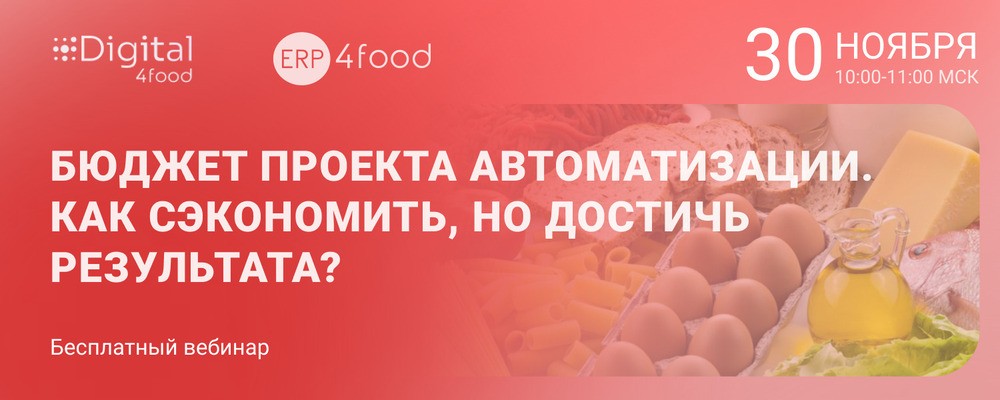 Компания «Константа» и комьюнити DIGITAL4food приглашают наших читателей на бесплатный вебинар «Бюджет проекта автоматизации. Как сэкономить, но достичь результата?», который будет проходить 30 ноября с 10:00 до 11:00 по московскому времени.