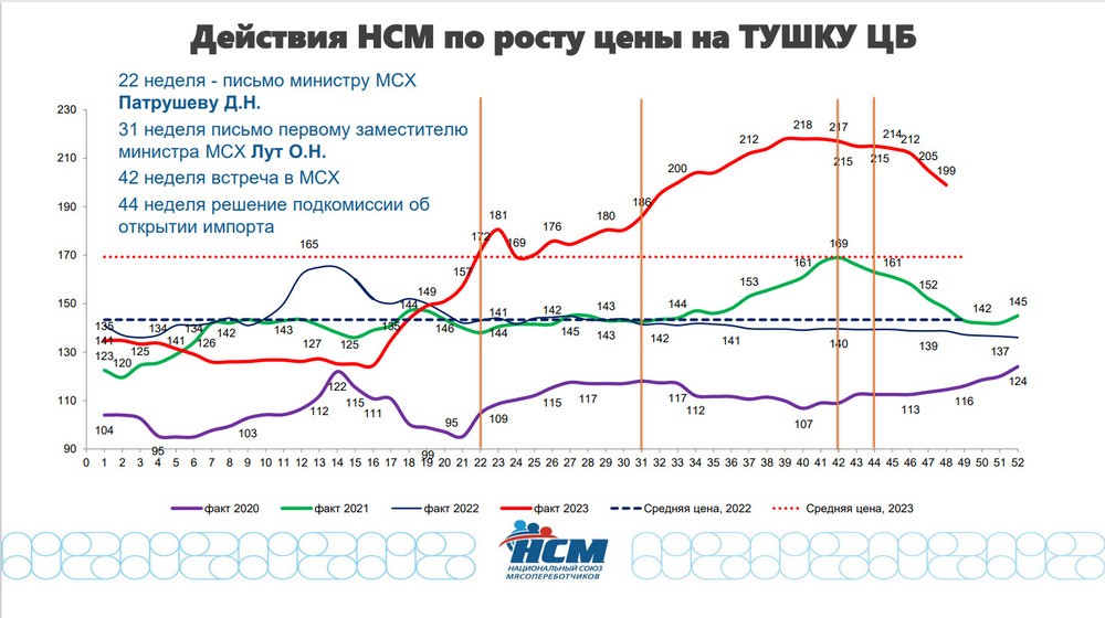 Национальный союз мясопереработчиков (НСМ) благодарит всех членов отраслевого объединения, предоставивших объективные данные о закупках куриного мяса на местах, и сотрудников Минсельхоза России за взвешенную позицию и понимание рисков производителей колбасных изделий в текущей рыночной ситуации.