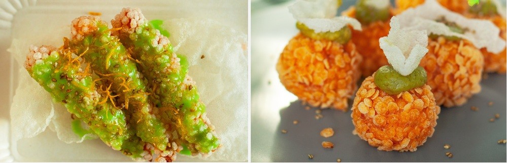 Креветки в панировке с баббл крамб и Боллы в системе с бабблами Акедама