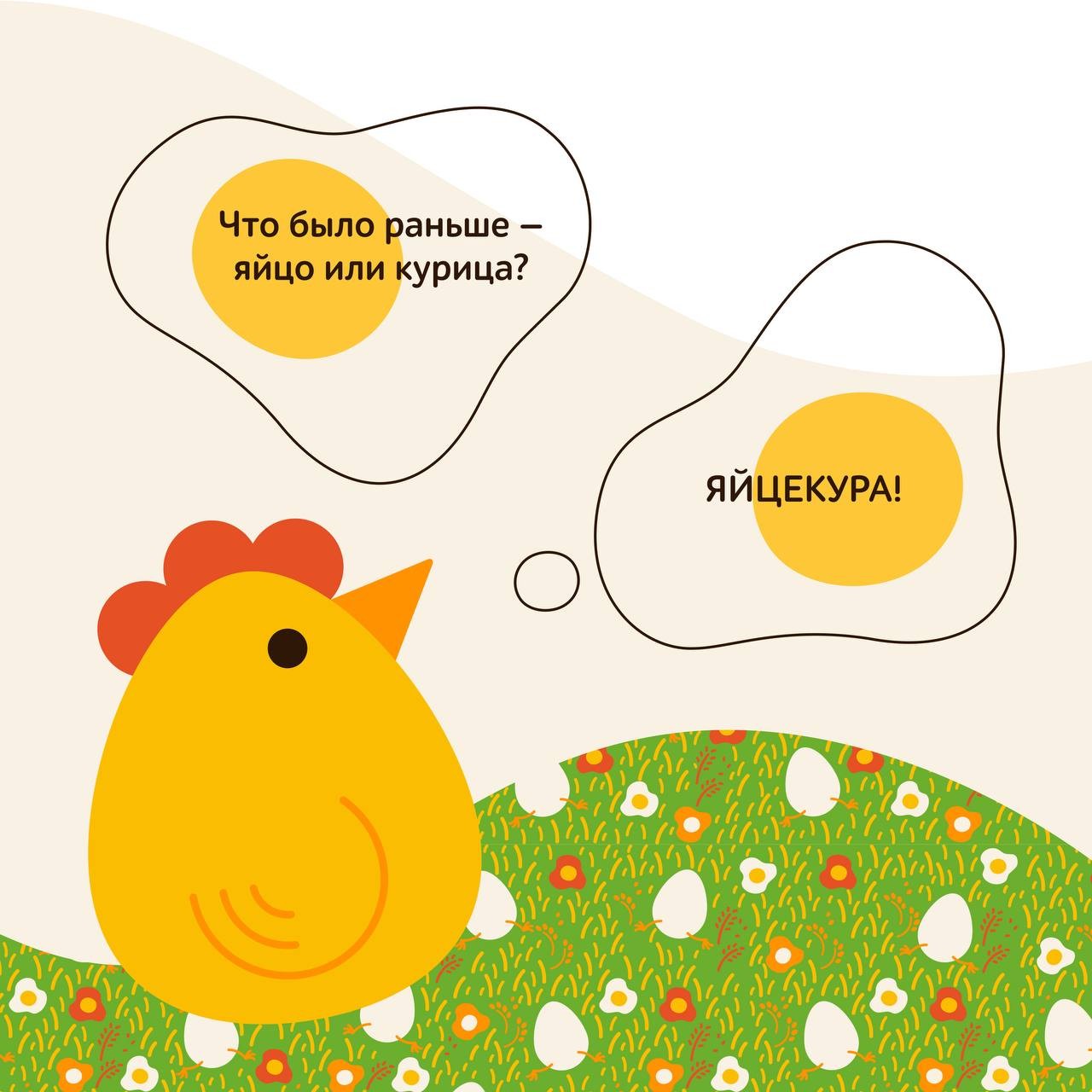 Так появился бренд-персонаж яйцекура, который теперь фигурирует на всех рекламных носителях Тульской птицефабрики. Детям нравится его сходство с игрушкой, а опытные пользователи социальных сетей с легкостью находят в вербальных элементах давно знакомые мемы.