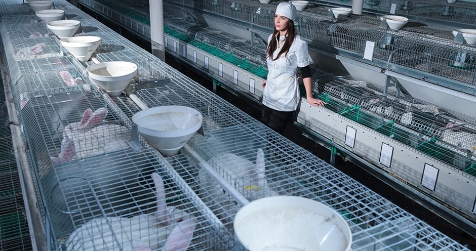 Каждую неделю на площадках кролиководческой фермы ангарного типа производят искусственное осеменение порядка 1000 самок для получения 7,3 тысячи детенышей.