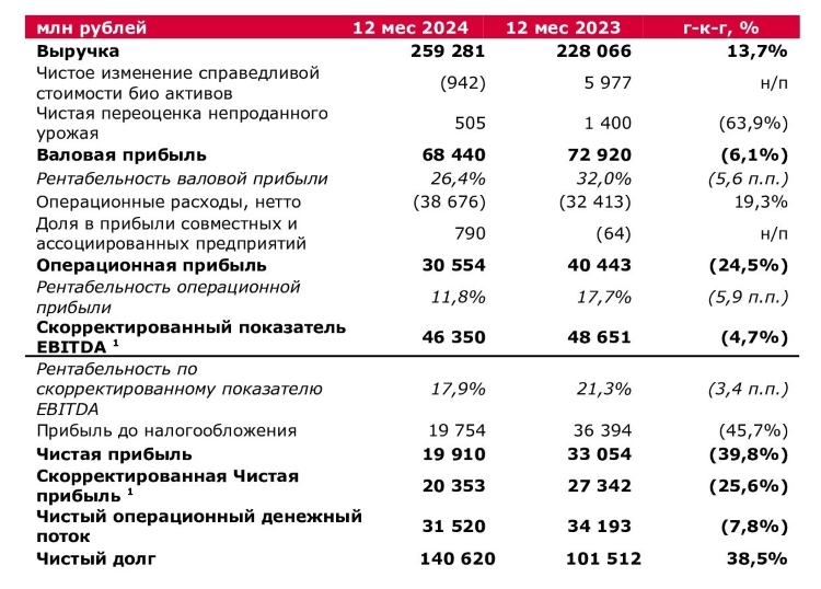 1В соответствии с методологией бухгалтерского учета группы компаний, скорректированный показатель EBITDA и скорректированная чистая прибыль не включают в себя чистое изменение справедливой стоимости биологических активов и некоторые другие статьи