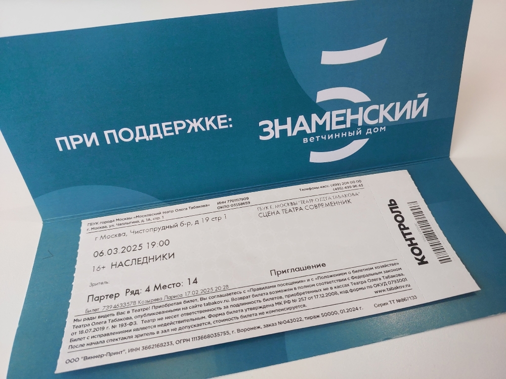 Подарком для всех, кто пришел в «Современник» на чествование благотворительного фонда, стал спектакль «Наследники» по пьесе «Дети Ванюшина», написанной драматургом Сергеем Найденовым. Главную роль сыграл Владимир Машков.