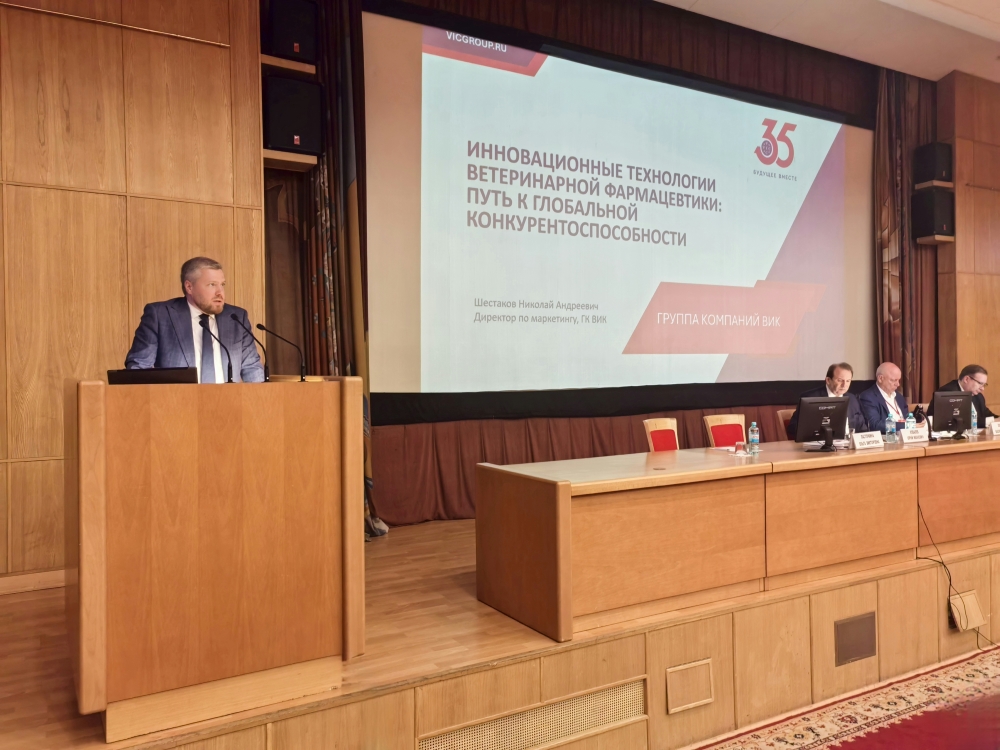В докладе «Инновационные технологии ветеринарной фармацевтики: путь к глобальной конкурентоспособности» директор по маркетингу группы компаний ВИК Николай Шестаков рассказал о комплексном подходе производителя ветеринарных препаратов к обеспечению ветеринарного благополучия свиноводческих хозяйств. Он выделил важнейший принцип взаимодействия: глубокую интеграцию специалистов ВИК в бизнес-процессы партнеров при разработке и внедрении индивидуальных совместных решений для выхода на максимально высокий уровень эффективности каждого агропромышленного холдинга.