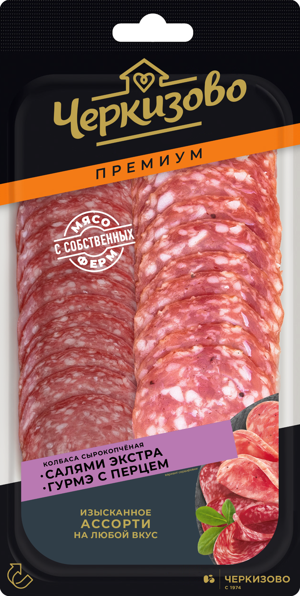 Ассорти «Салями Экстра» и «Гурмэ с перцем» под брендом «Черкизово Премиум» создавались для ценителей изысканных вкусов. В состав этих сырокопченых колбас входит букет натуральных специй и пряностей, который сулит гурману настоящее гастрономическое удовольствие.