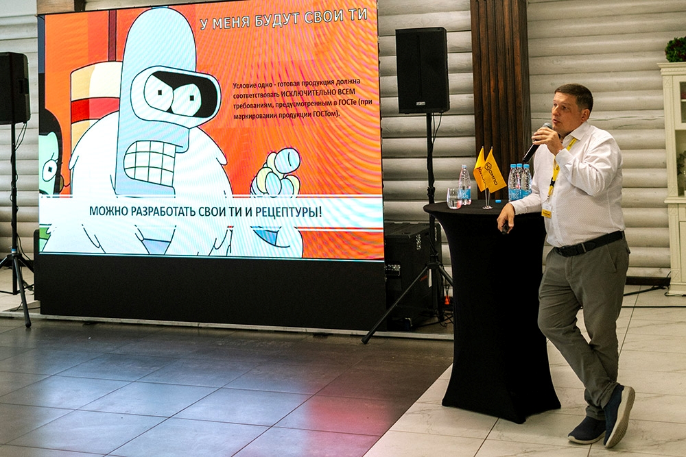 В своем выступлении Владимир Романов уделил внимание заблуждениям из практики фаршесоставления и некоторым аспектам санитарии на мясоперерабатывающих предприятиях. Все, что он изложил, было подтверждено неоспоримыми доказательствами в виде литературных источников.