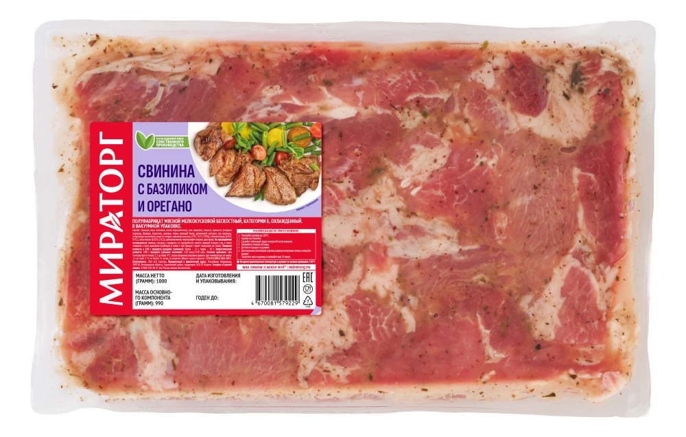 Пресс-центр «Мираторга» сообщает, что в сети фирменных супермаркетах появились два новых продукта для запекания: «Свинина с базиликом и орегано» и «Tender Pork в белом соусе с пряными травами».