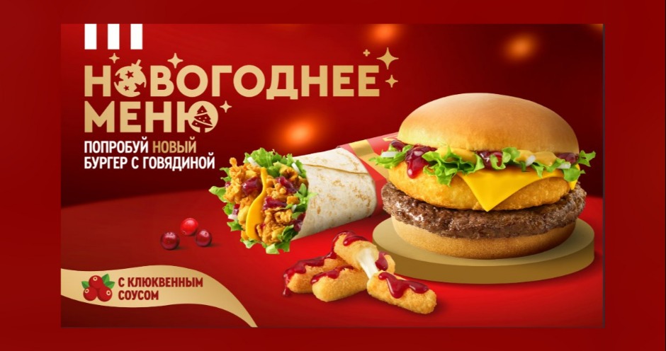 С начала декабря в ассортименте, унаследованном от KFC, наряду с курицей впервые появится говядина. Центральная позиция новогоднего меню будет доступна только в России.