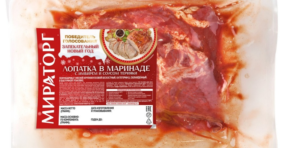 Из 25 вариантов, представленных «Мираторгом» в ходе предпраздничной акции, безоговорочно, с более чем двукратным отрывом, победила новая позиция в ассортименте — «Лопатки свиной в маринаде с имбирем и соусом терияки».