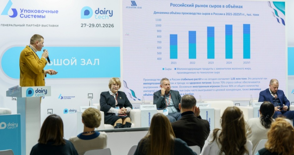 Компания «Атлантис-Пак» подвела итоги участия в международной выставке DairyTech, прошедшей в Москве 27–29 января. В программу аналитической сессии «Молочное производство будущего: технологии, которые работают» был включен экспертный доклад «Инновационные упаковочные решения для современного сыроделия: ассортимент, рынок и тенденции на 2026 год», подготовленный начальником службы маркетинга Артемом Татаровым.