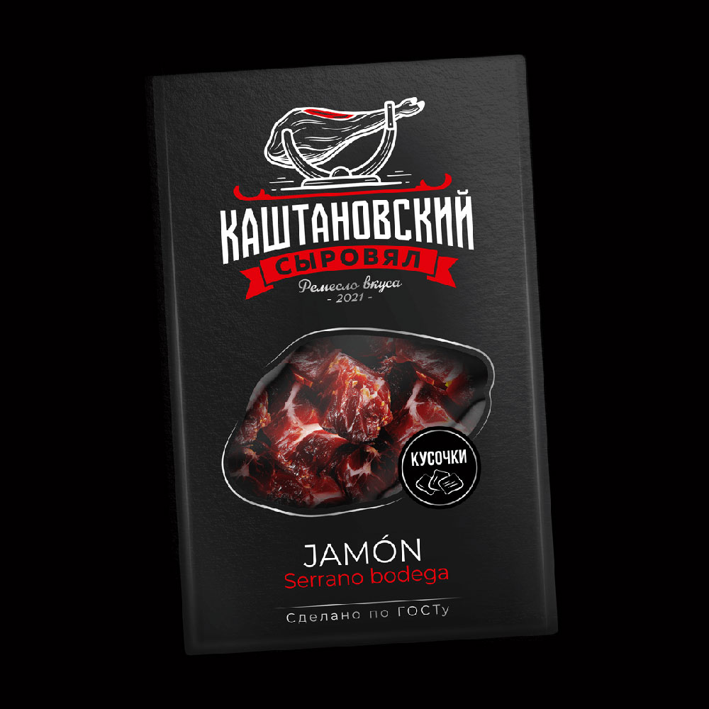 Портал Unipack представил дизайнерское решение упаковки хамона под товарным знаком «Каштановский сыровял», разработанное петербургским брендинговым агентством Art Groove для смоленской компании «Кейсинг Продакшн».