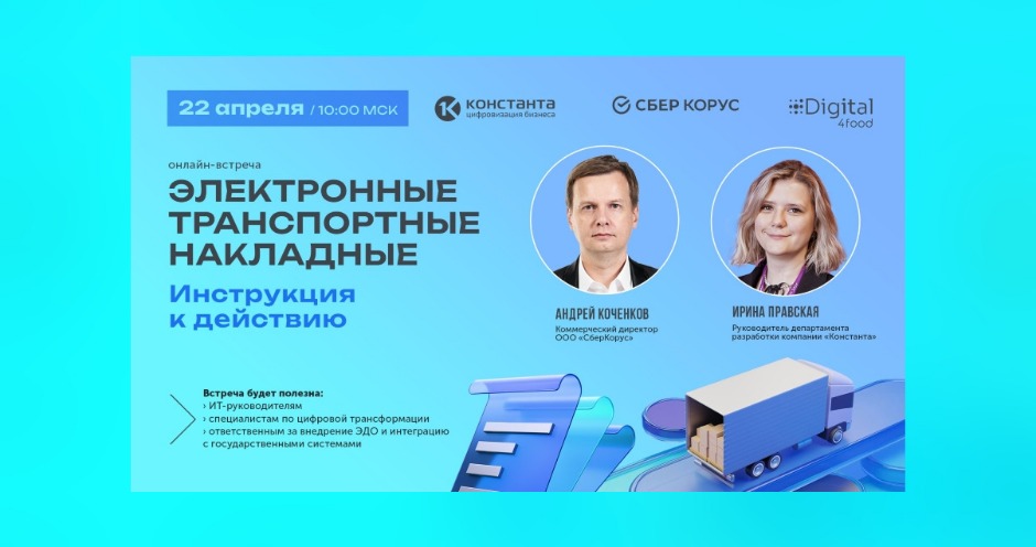 Специализированный IT-интегратор «Константа», цифровая платформа для электронного документооборота «СберКорус» и отраслевое коммьюнити Digital4food приглашают на вебинар, который состоится 22 апреля в 10:00 по московскому времени.