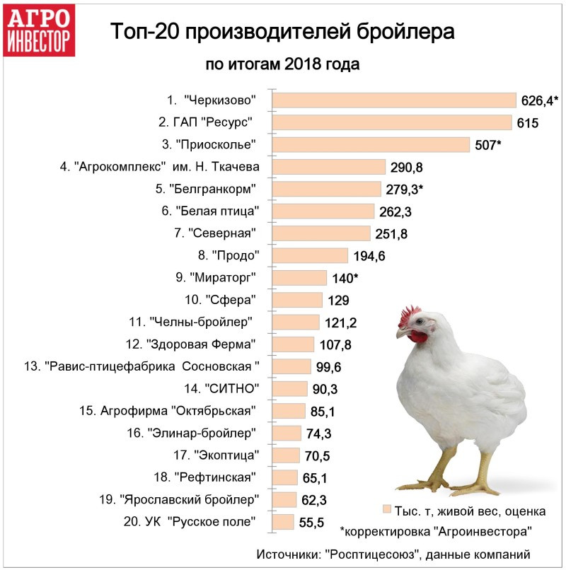 Росптицесоюз составил топ-20 производителей бройлера