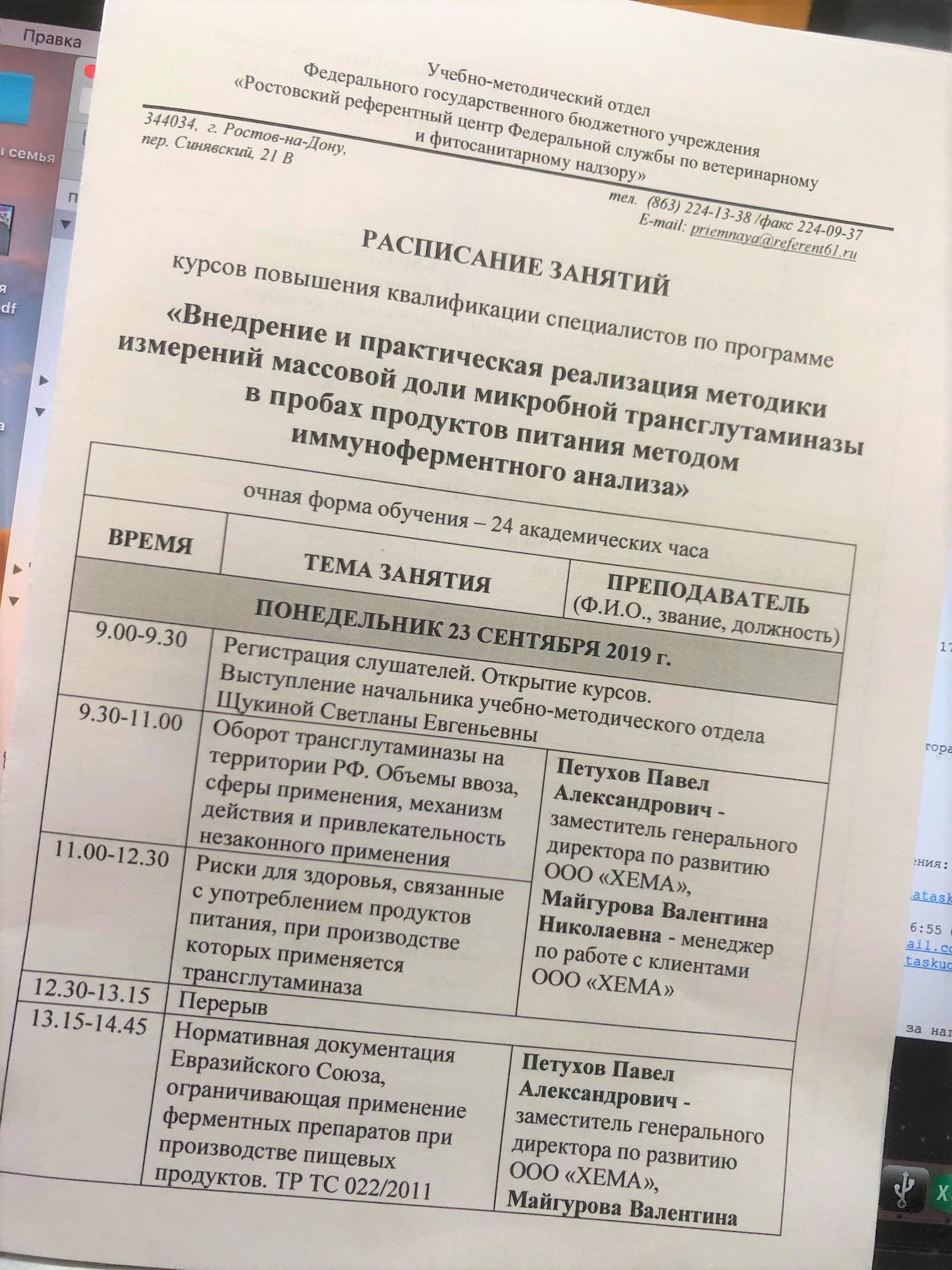 «ХЕМА» учит лаборантов находить трансглутамининазу (мТГ) в продуктах питания