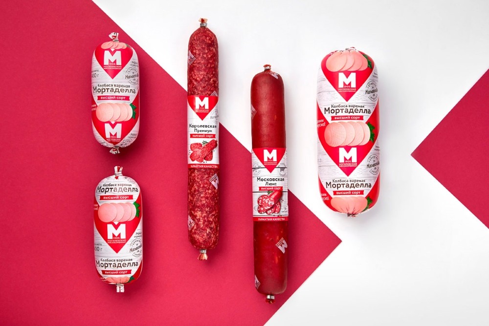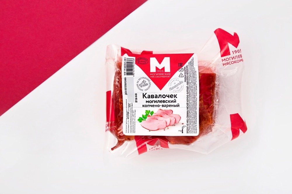 Массивная буква «М» в сочетании с контрастными красным и белым цветами упаковки выделяют продукт Могилевского мясокомбината на полке. Новая айдентика обеспечила шрифтовое и цветовое единство, тем самым очистив дизайн упаковки мясных продуктов. Уникальное торговое предложение и фудзона, демонстрирущаая изделие в разрезе — это ответы на самые важные инсайты потребителей, выявленные в ходе исследования.